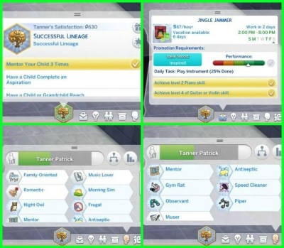 Since we started, Tanner as aged up twice to become an elder, I find it weird that he ages up slightly faster than Jen because they started at the same time. And he has completed the Musical Genius lifetime aspiration and is now working towards the Successful Linage lifetime aspiration. He works in the entertainer career and, like Jen, has accumulated quite a lot of traits.