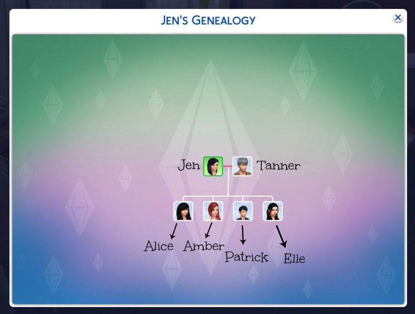 Before we even get into talking about my sims, let me give you a peek at the family tree.
