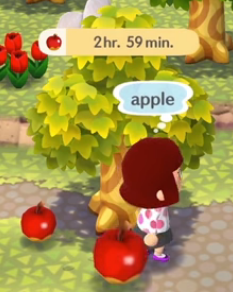 Also, I noticed in the video that when the villager shook the fruit tree, it told you a time for when the trees would replenish with fruit which is interesting. In other games, normally fruit would just reappear the next day but it’s good to know the waiting time is a lot less for this mobile game. Although I guess it would have to be to get those materials. Crafting furniture